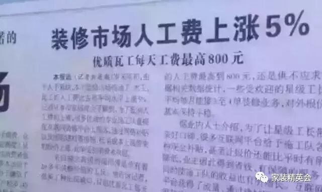 在家装所涉及的工种中,木工人工费涨幅尤为明显,去年这个时候一位普通木工师傅的日薪在300元/天,而今年已普遍涨到了350元/天,有些口碑好的老师傅甚至达到了400元/天。
